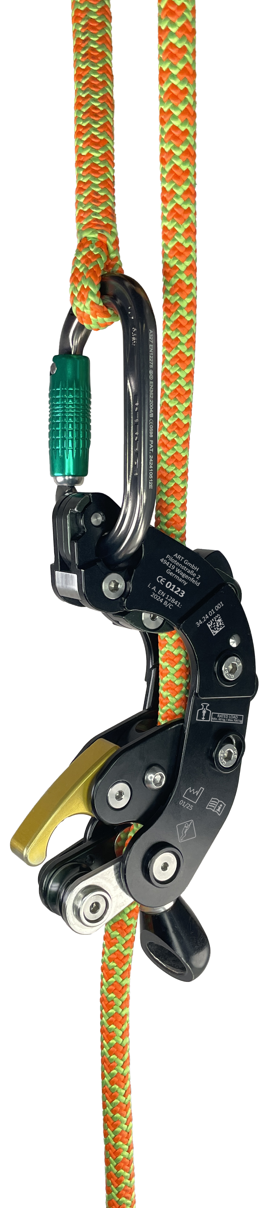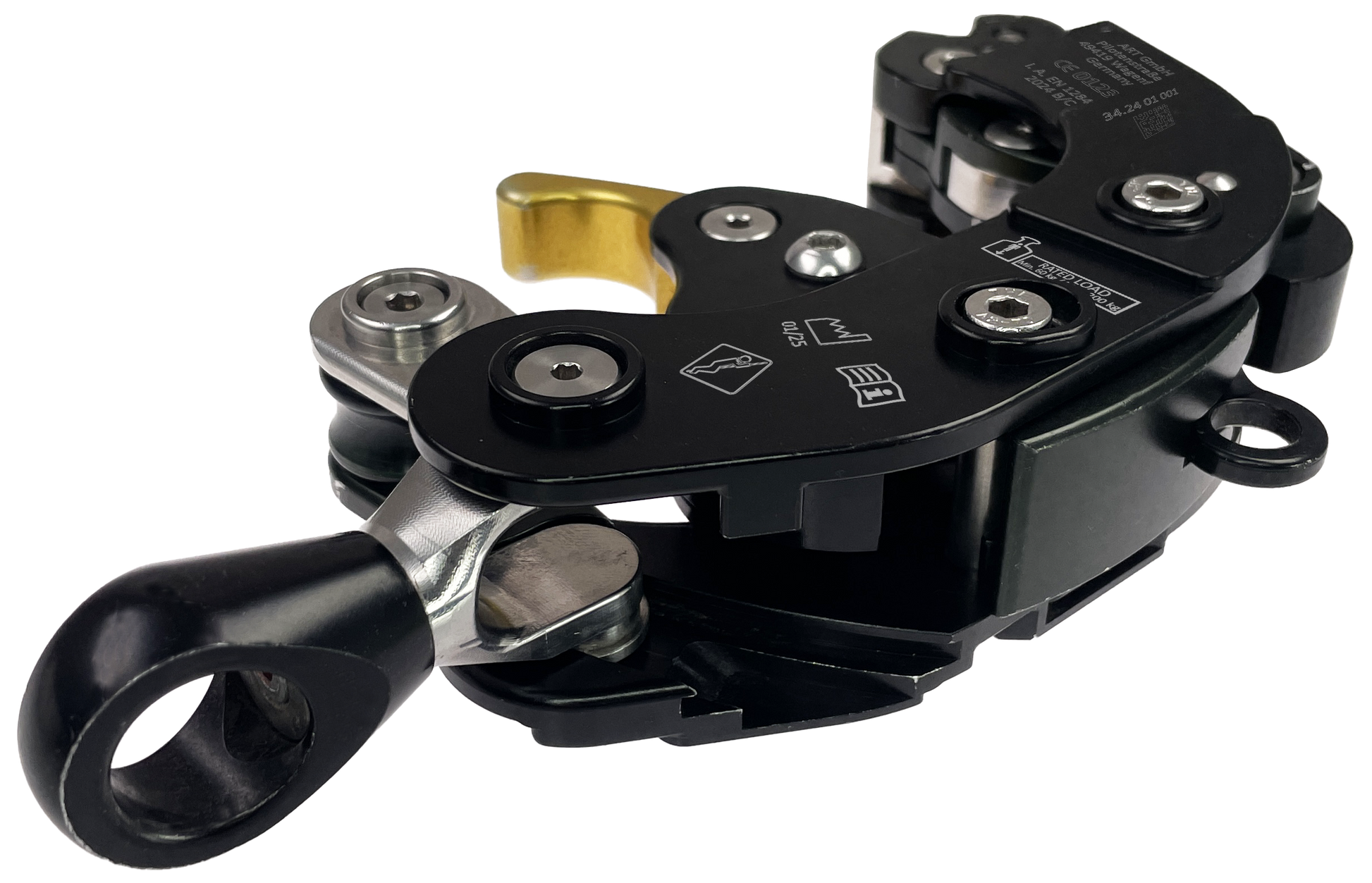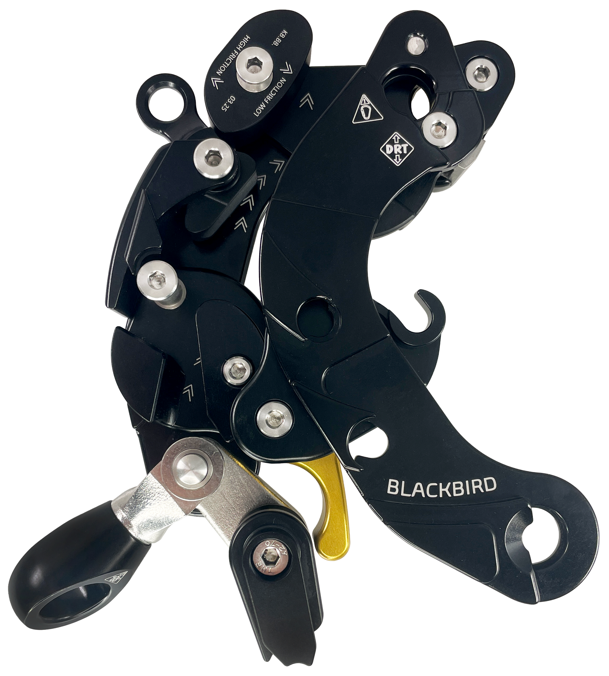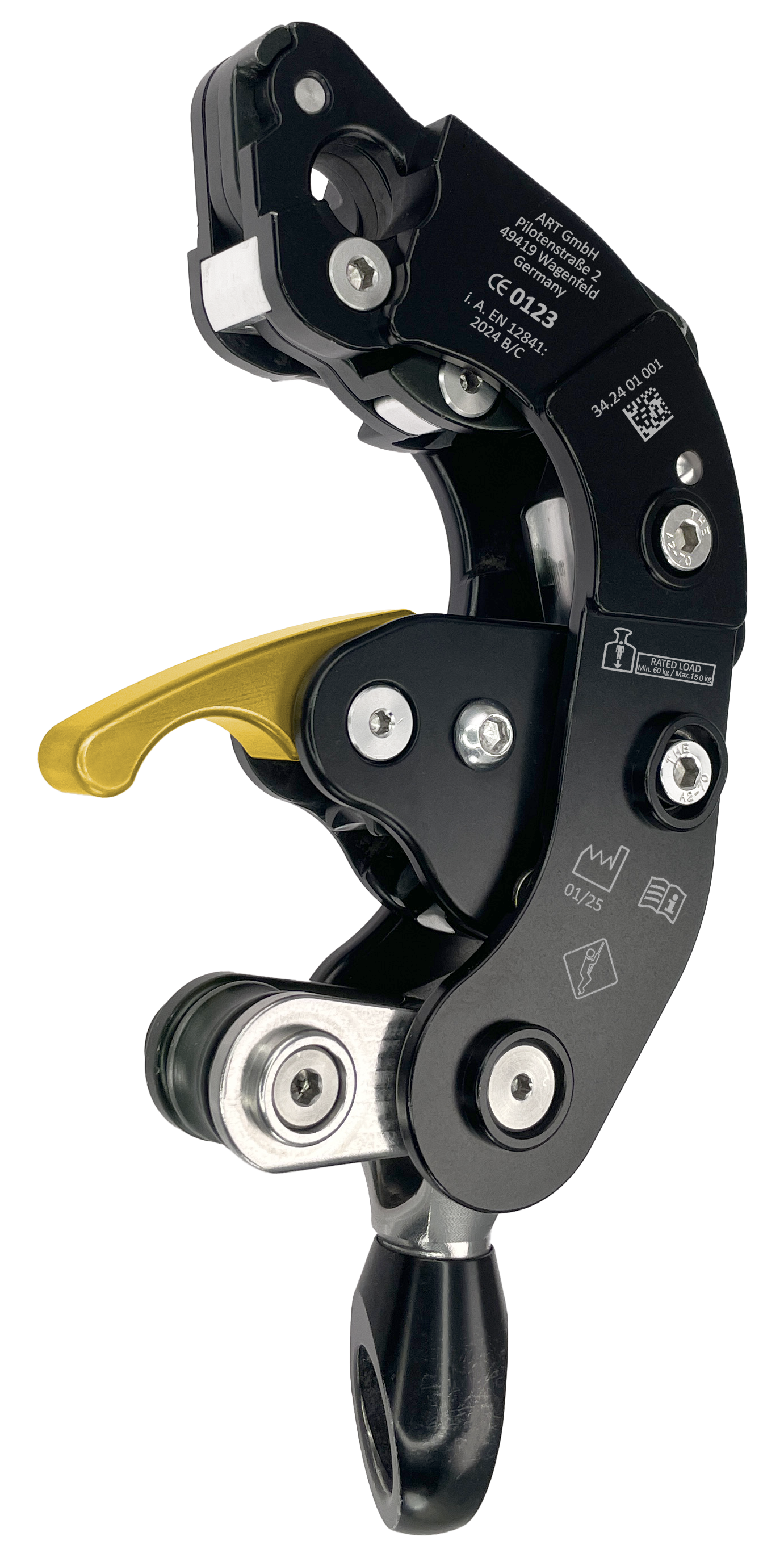 The BlackBird by ART has been designed to facilitate climbing both with a single rope system (SRS/SRT) and a moving rope system (MRS/DRT). Without additional adjustments or tools, it is possible to switch between both techniques. The rope does not need to be removed from the device for this. The construction allows for identical descent behaviour in SRT and MRS. The BlackBird can be fully opened with a push button and can be is mid-line attachable without the device needing to be detached from the harness.