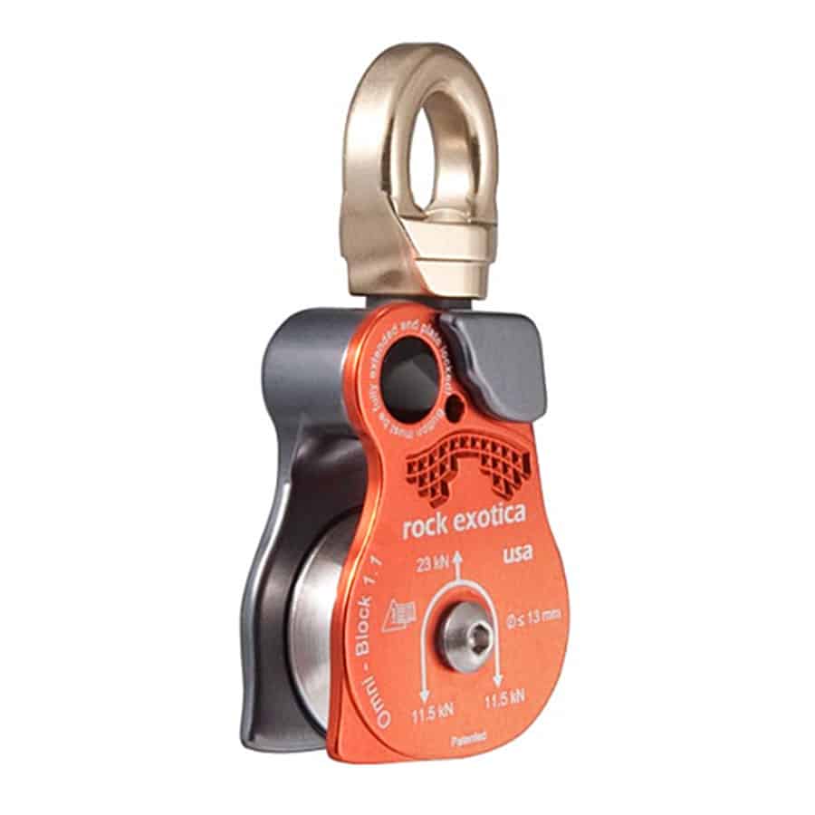 The Omni Block combines a swivel and pulley into one tool, and incorporates a unique side plate that opens while the pulley is still attached to the anchor. Traditionally, a pulley is connected to a swivel by a karabiner. However, the Omni eliminates the need for the karabiner, reducing length and pieces of equipment in the rigging system. The short length of the Omni is important when used in high-angle, confined space or other space-sensitive rigging environments. The reduced weight of the Omni will make hauling your gear easier. Additionally, the Omni side plate can be opened without detaching from the karabiner.