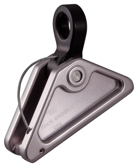 The rockGrab 90° is an advanced design over the traditional rope grab/adjuster. Featuring a 90° connection point, the grab excels on horizontal lines where it will properly orient with the D-ring on the harness. The rockGrab body is milled along the side to remove unnecessary material, making it one of the lightest grabs available. Additionally, the axle rests entirely within the body giving the grab a slim profile free of any annoying external bolts or pins. Designed to be left on the rope.