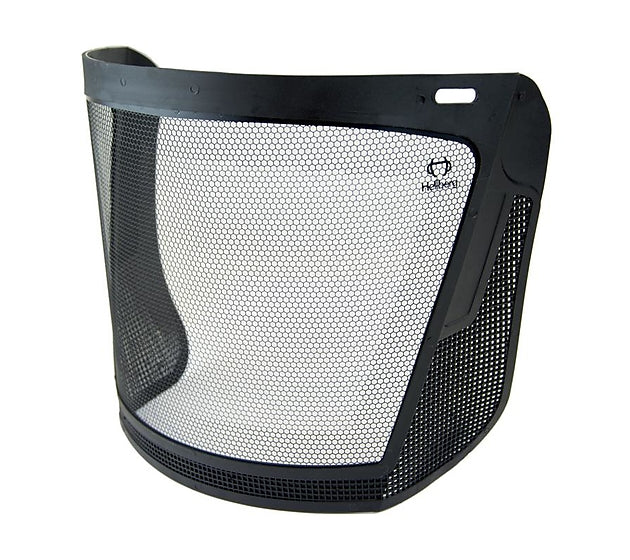 Hellberg steel mesh visor with the unique hexagon shaped etching providing superior light transmission for added safety in low-light conditions.