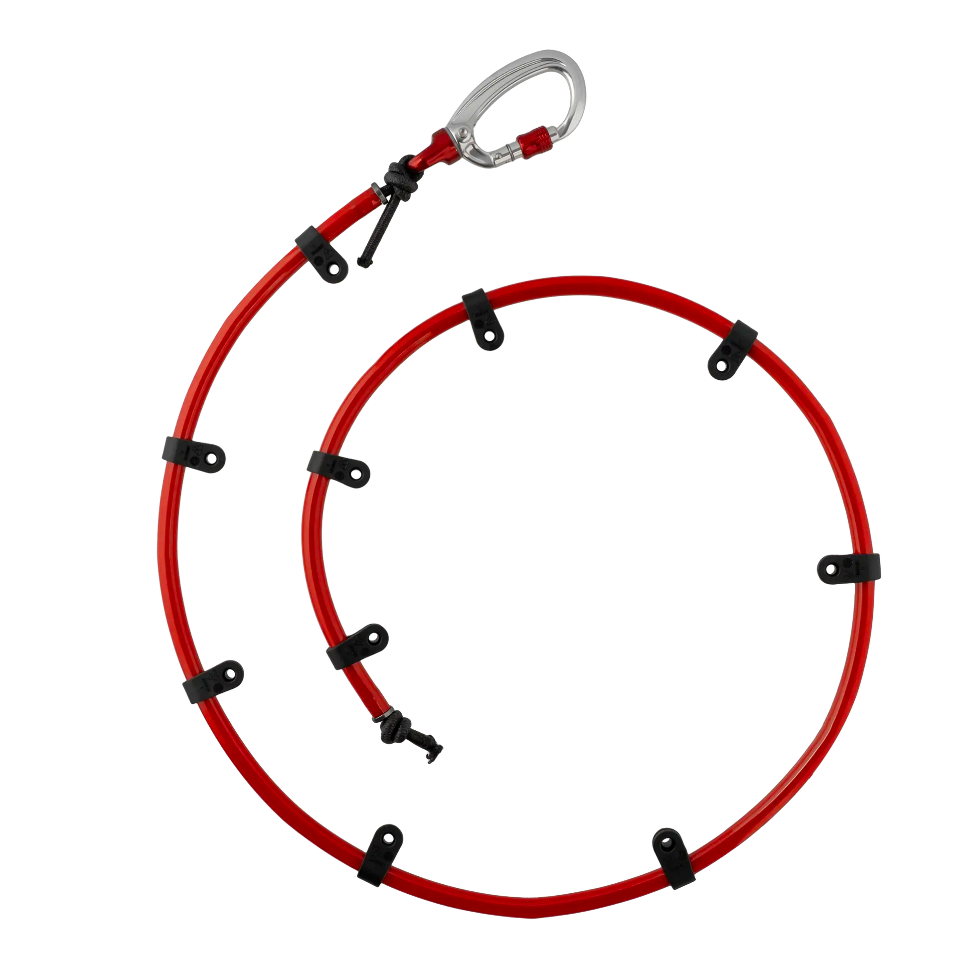 The XSRE Swivel Carabiner (included) provides a secure and compact means for connecting into the knee ascender. With the addition of a second XSRE Swivel Carabiner* both ends of the elastic can be connected in, doubling the lifting power and helping to keep the system aligned.