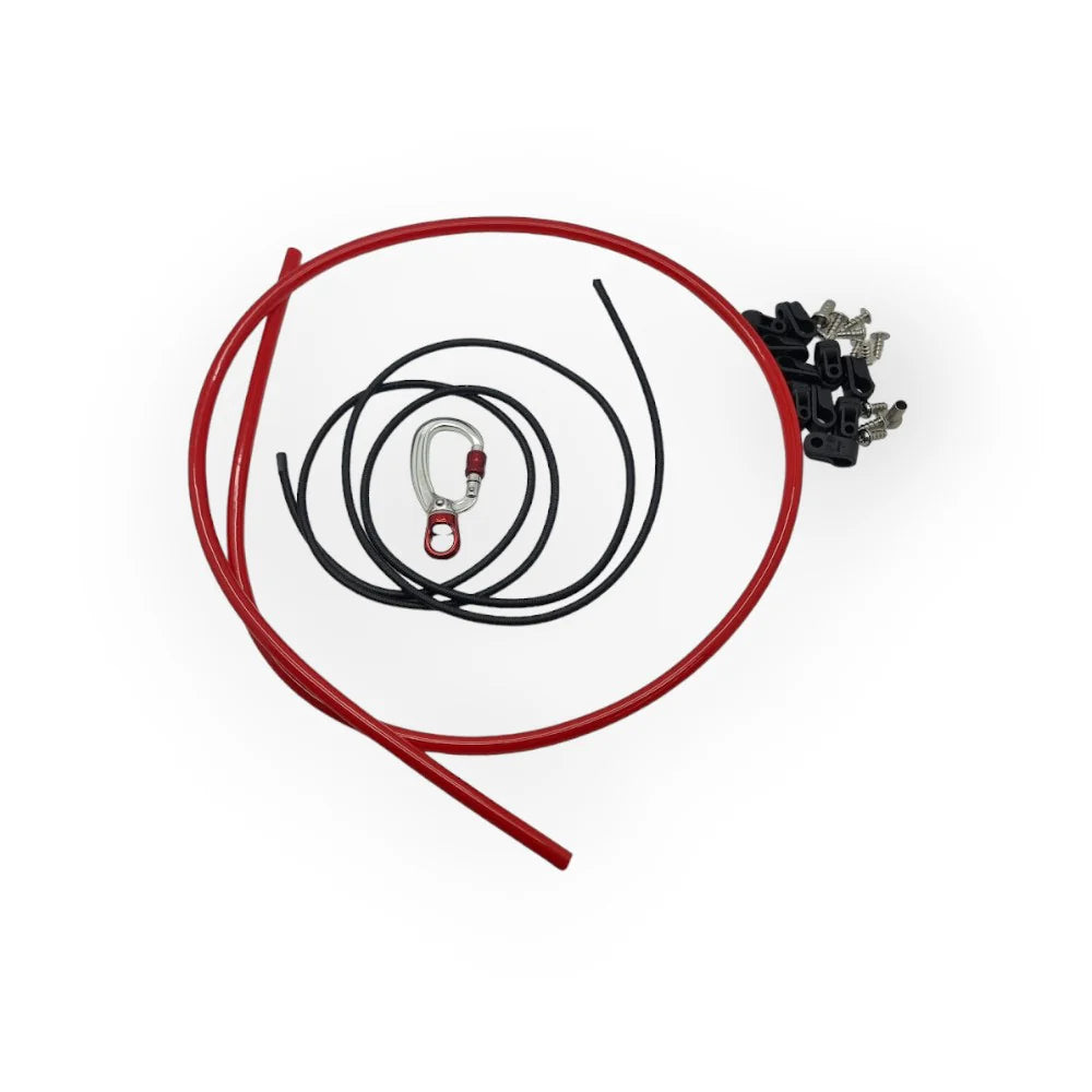 The Tendon Tube Clips are designed to interface with the attachment holes on the Kinisi harnesses.